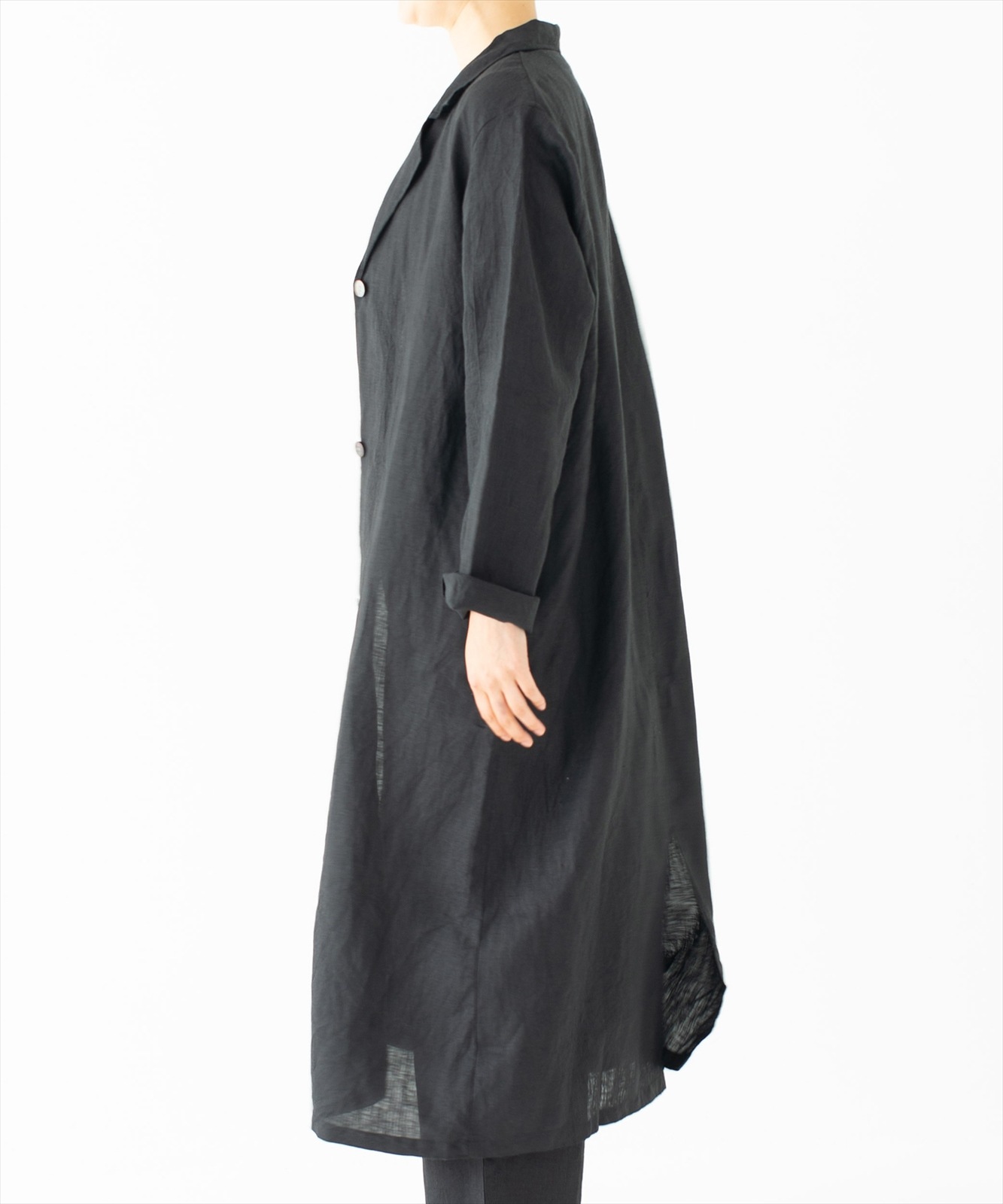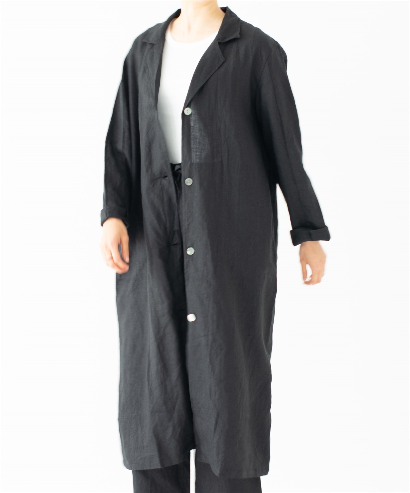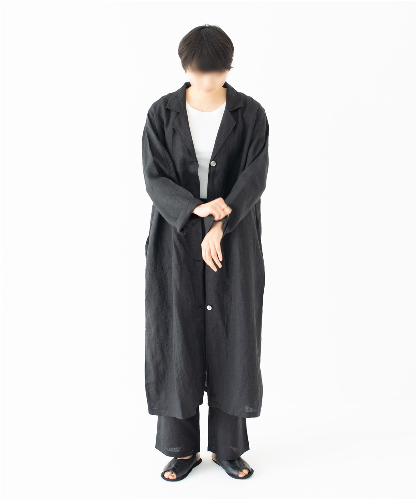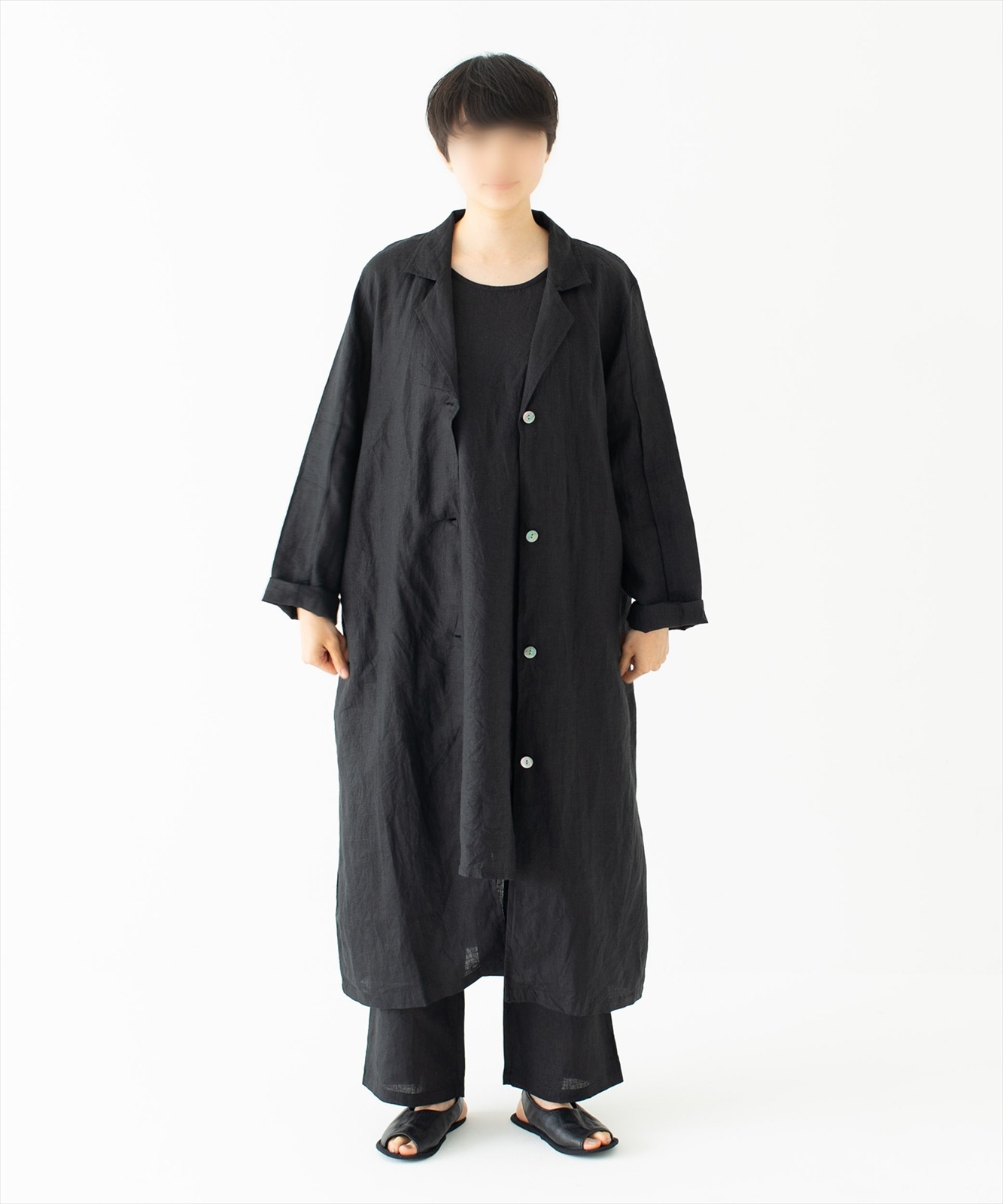 - 通気性の良いリネンに洗いをかけたラフさにこだわった質感と、個性的でゆったりと着心地が良い、リラックスできるシルエットに仕立てています。