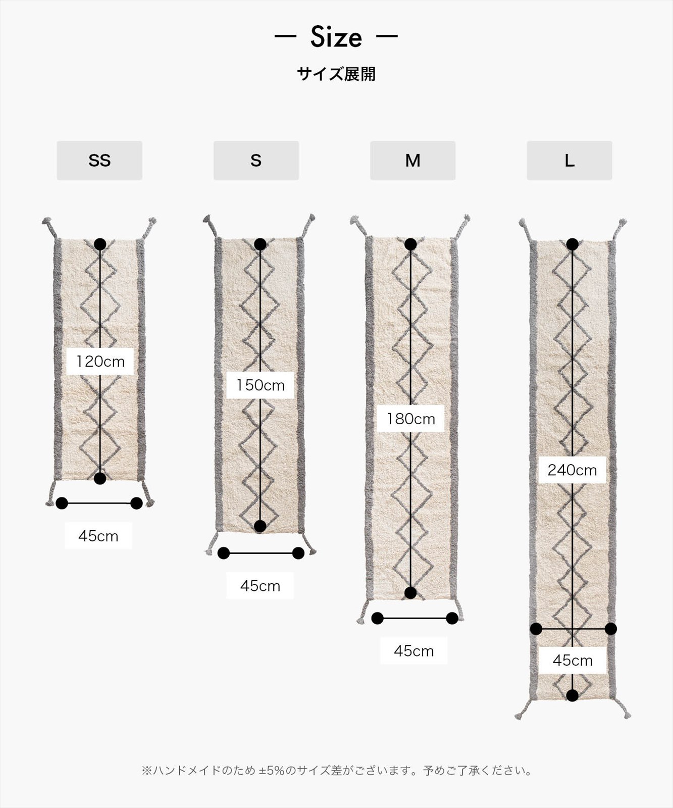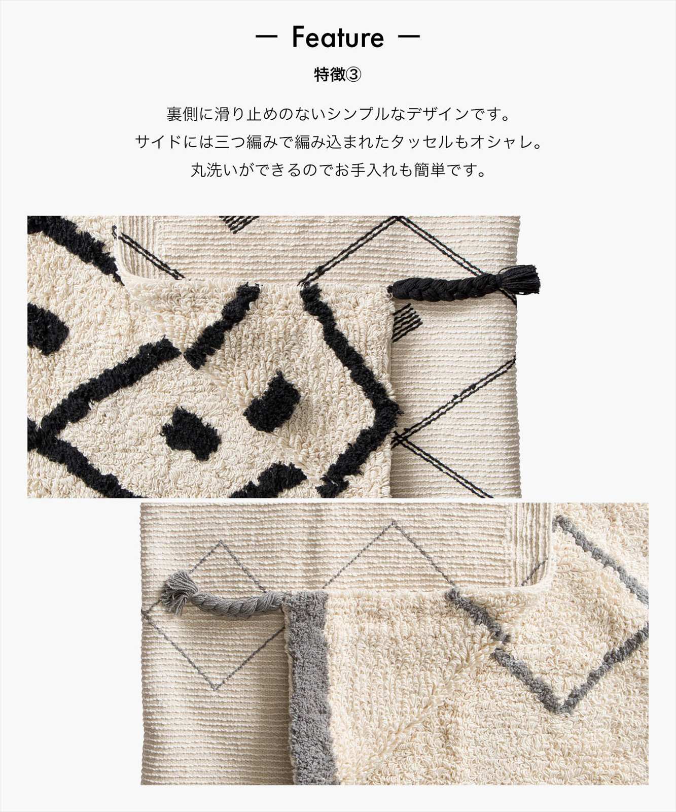 - ●ハンドメイドのため±5%のサイズ差がございます。予めご了承ください。●洗濯時は必ず洗濯用ネットご利用の上、他のものと絶対に一緒に洗わないでください。●漂白剤は使用しないでください。●転倒の原因となりますので、マットがすべらない様に十分に注意の上ご利用ください。●マットがすべる場合は滑り止めの下敷き併用をお願いします。●不燃性ではありませんので火気のそばで使用しないでください。●水濡れや摩擦により色落ちや色移りすることがありますのでご注意ください。●毛羽落ちがなるべく軽減されるように製造していますが製品の性質上羽毛落ちは発生します点をご了承ください。