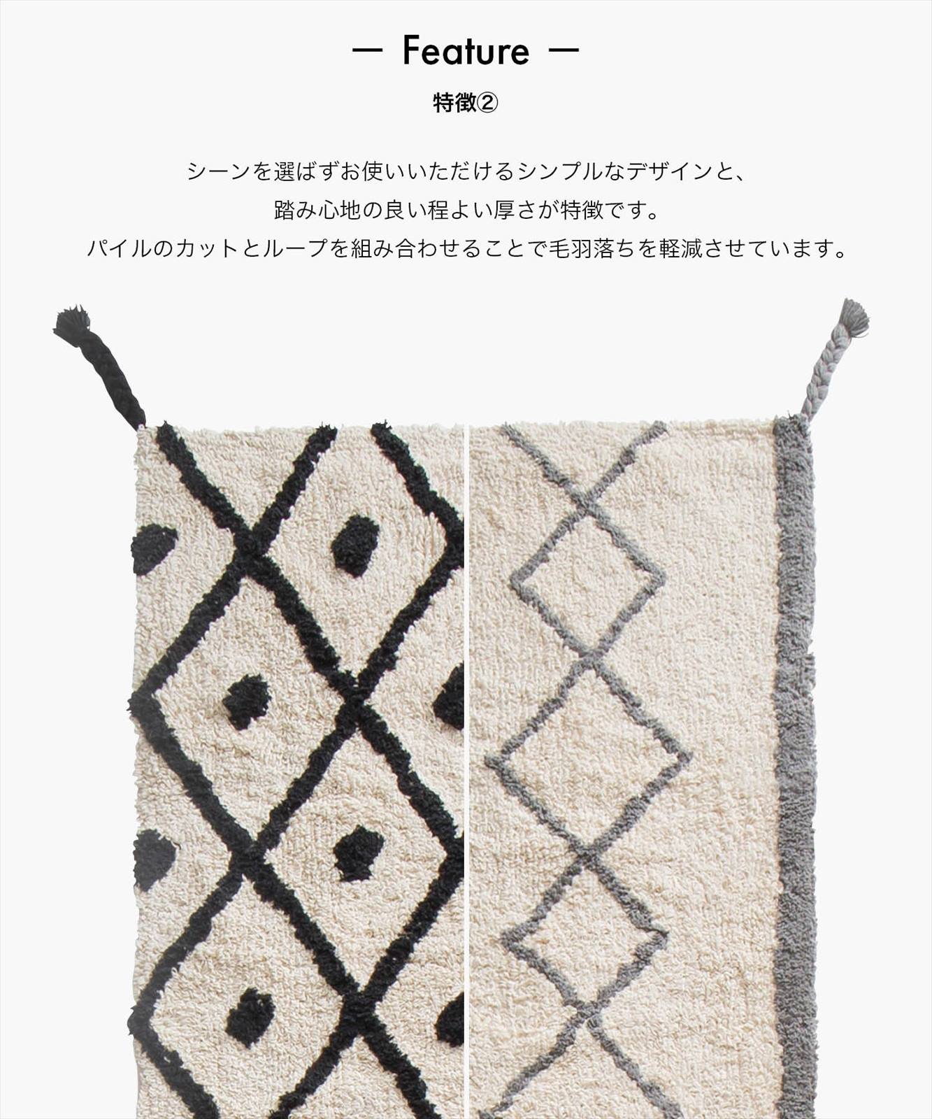 - シーンを選ばずお使いいただけるシンプルなデザインと、踏み心地の良い程よい厚さが特徴です。