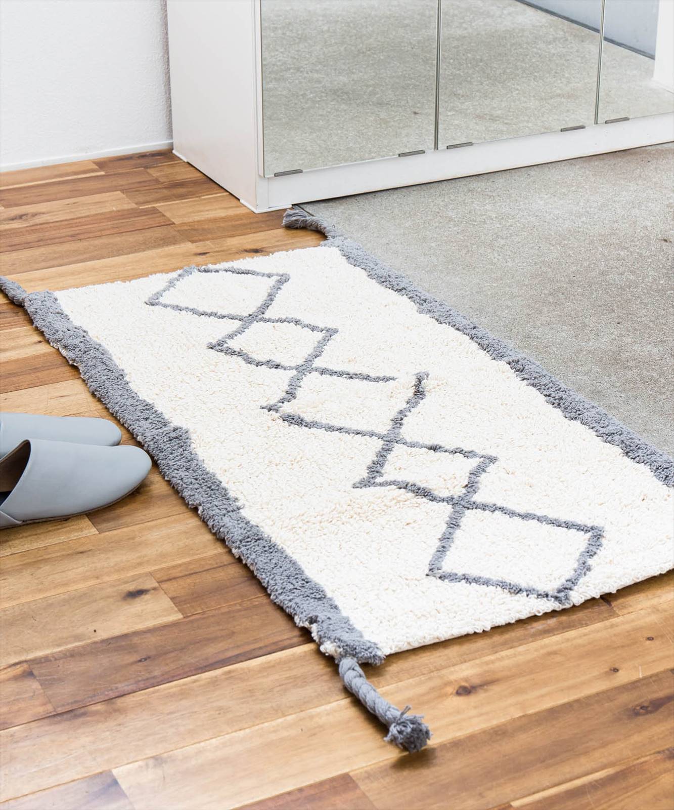 b2c コーナーマット ダイヤ|オーガニックコットン(ナチュラル×グレー) #clearanceSALE