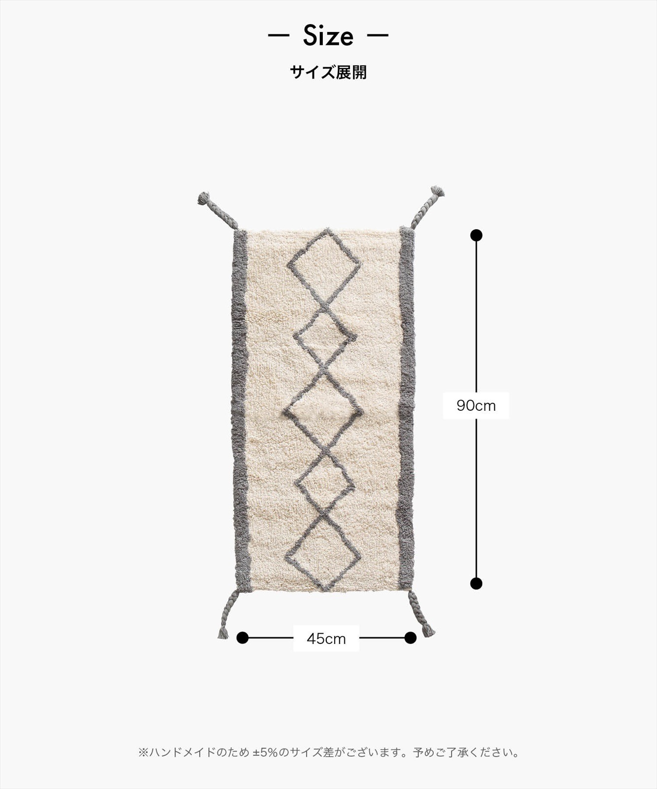 - ●ハンドメイドのため±5%のサイズ差がございます。予めご了承ください。●洗濯時は必ず洗濯用ネットご利用の上、他のものと絶対に一緒に洗わないでください。●漂白剤は使用しないでください。●転倒の原因となりますので、マットがすべらない様に十分に注意の上ご利用ください。●マットがすべる場合は滑り止めの下敷き併用をお願いします。●不燃性ではありませんので火気のそばで使用しないでください。●水濡れや摩擦により色落ちや色移りすることがありますのでご注意ください。●毛羽落ちがなるべく軽減されるように製造していますが製品の性質上羽毛落ちは発生します点をご了承ください。