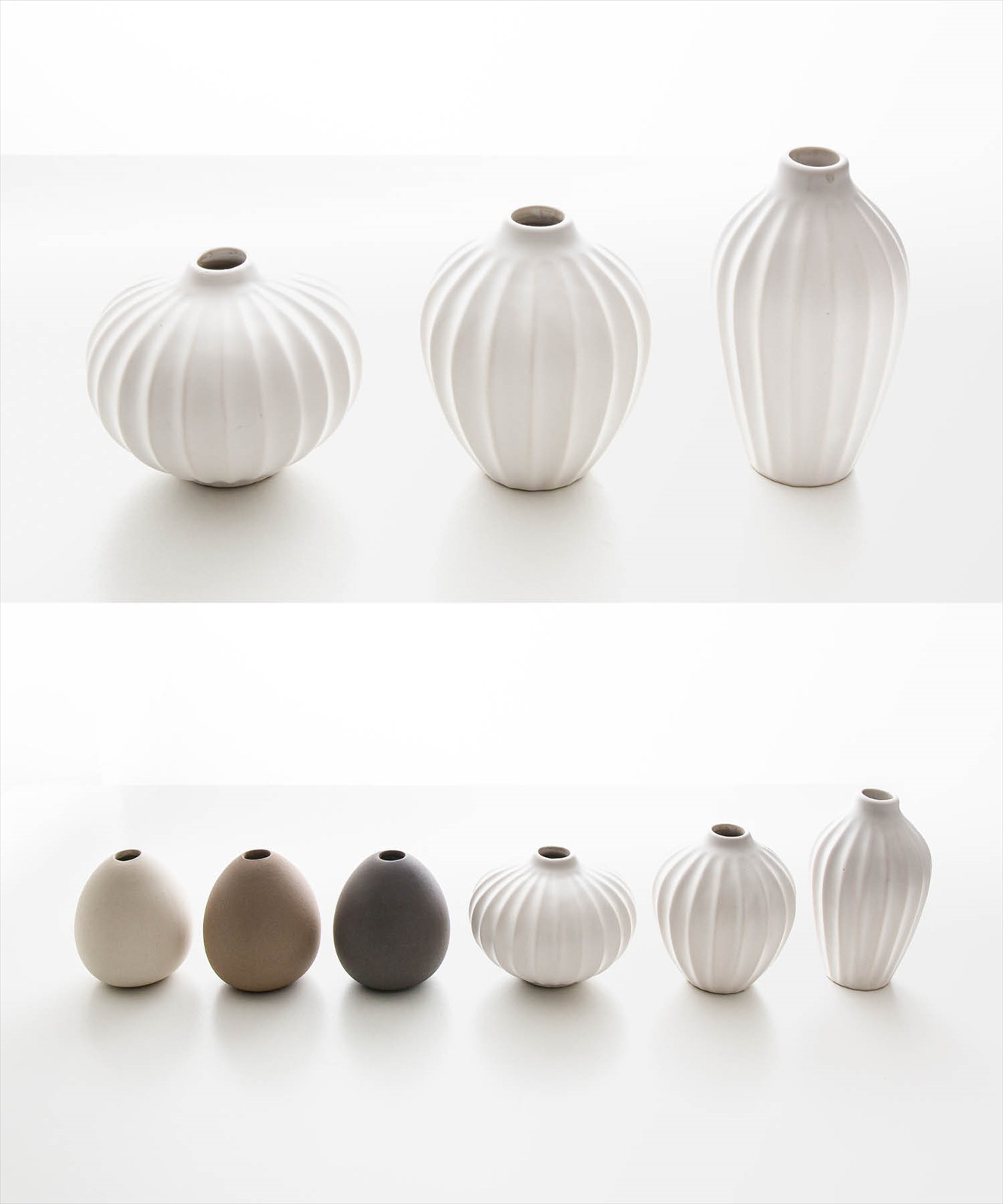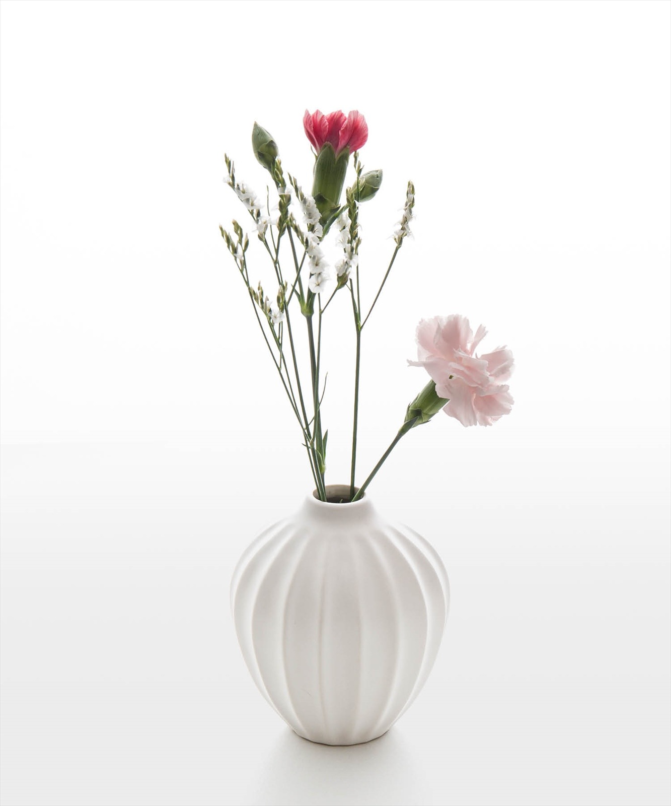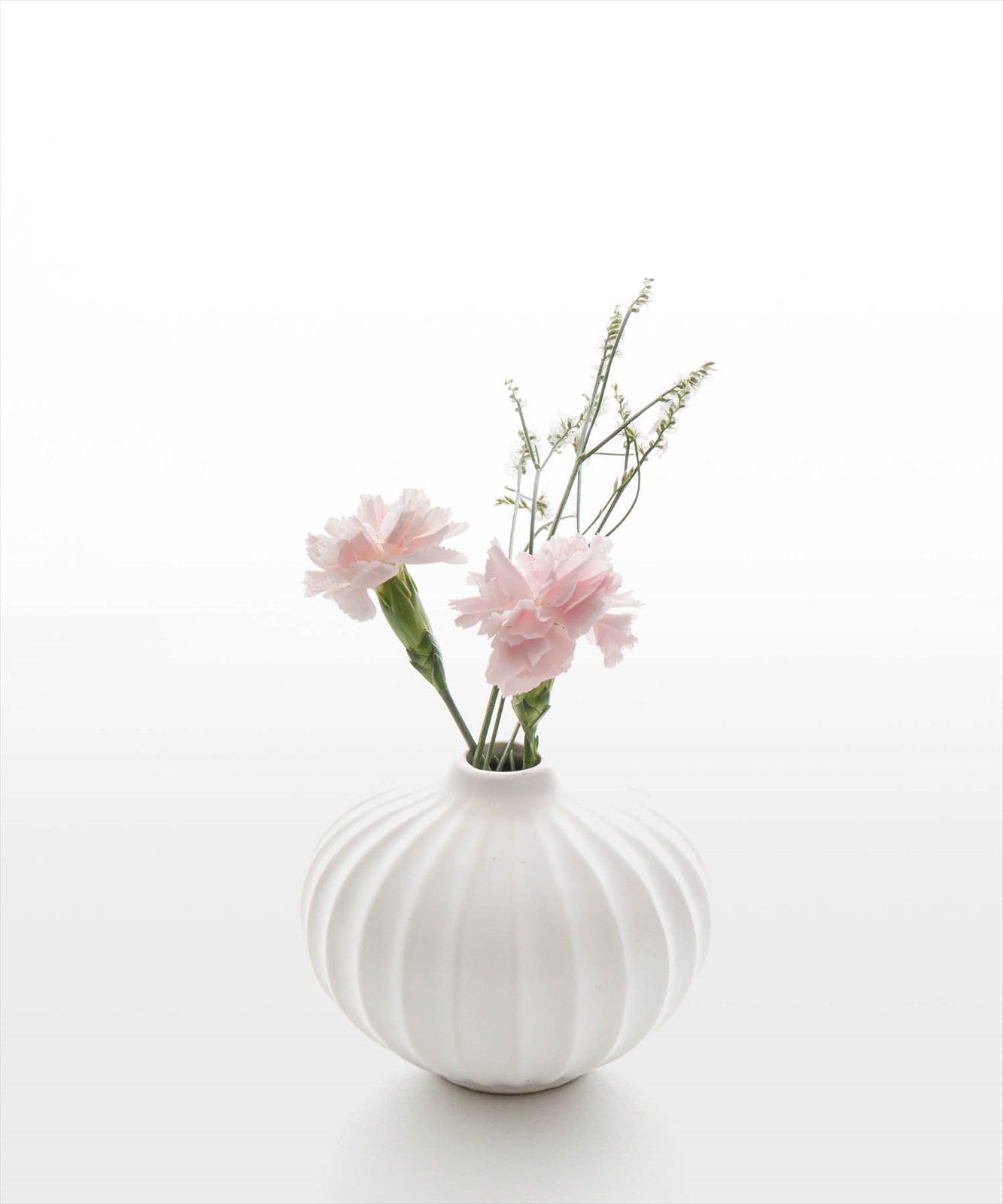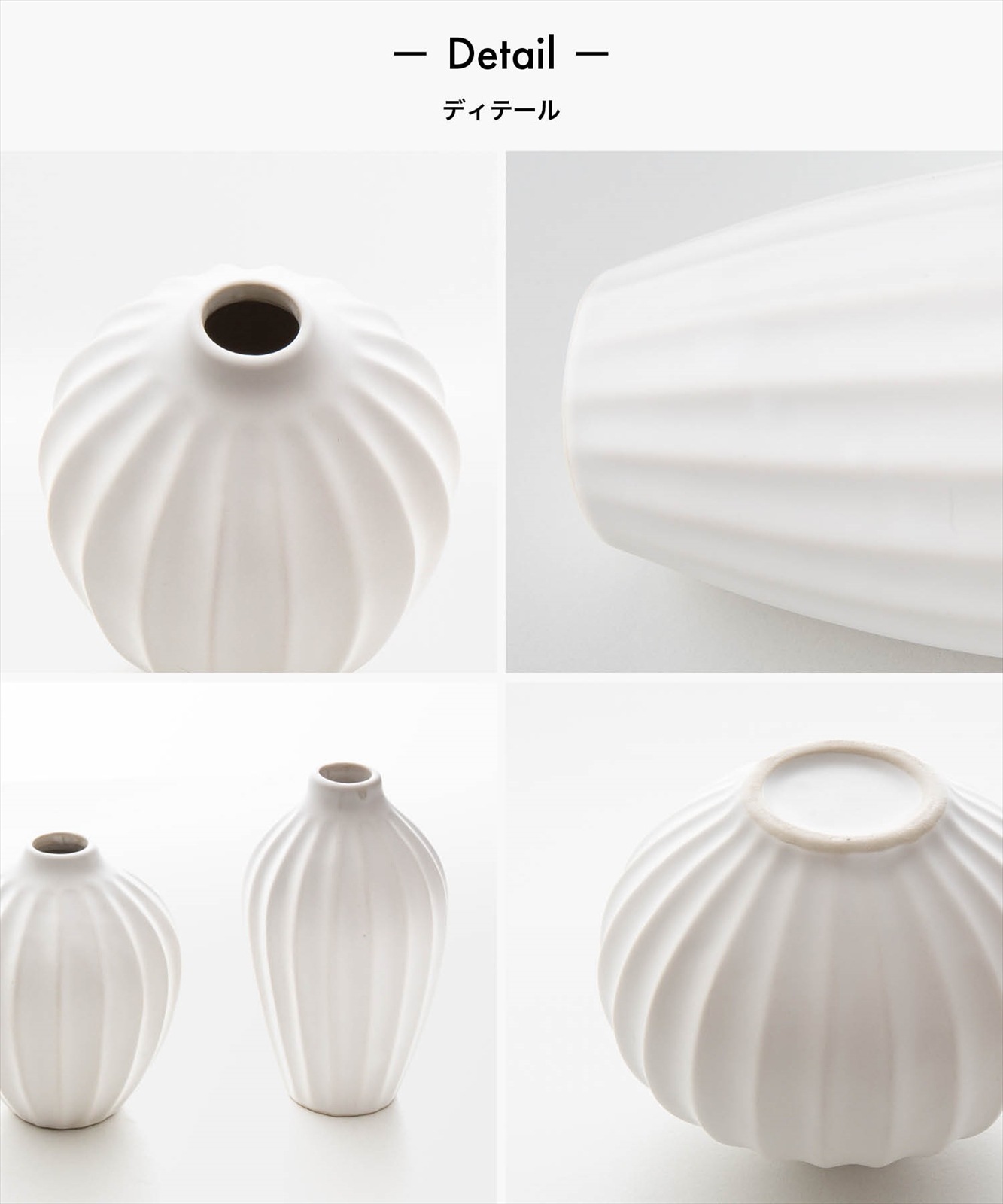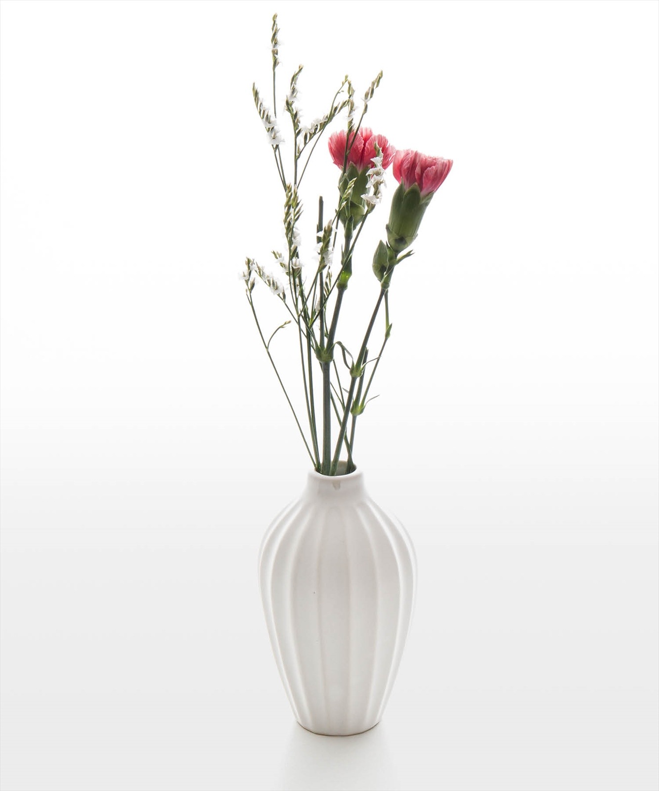 鎬(しのぎ)がアクセントの白い陶器の小ぶりなアロマ&フラワーベース