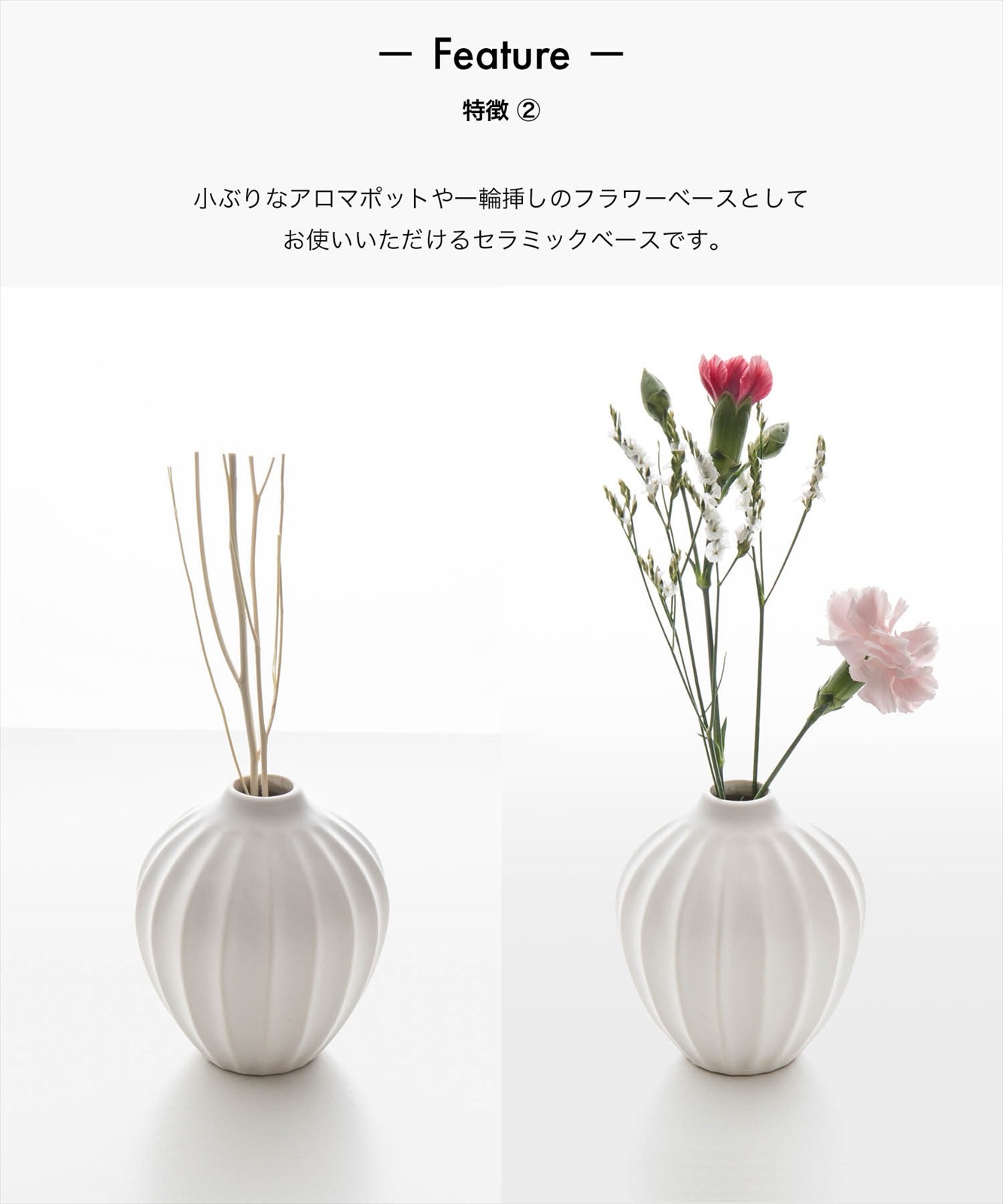 - アロマポットとして、また一輪挿しとしてお使いいただけるセラミックベースです。