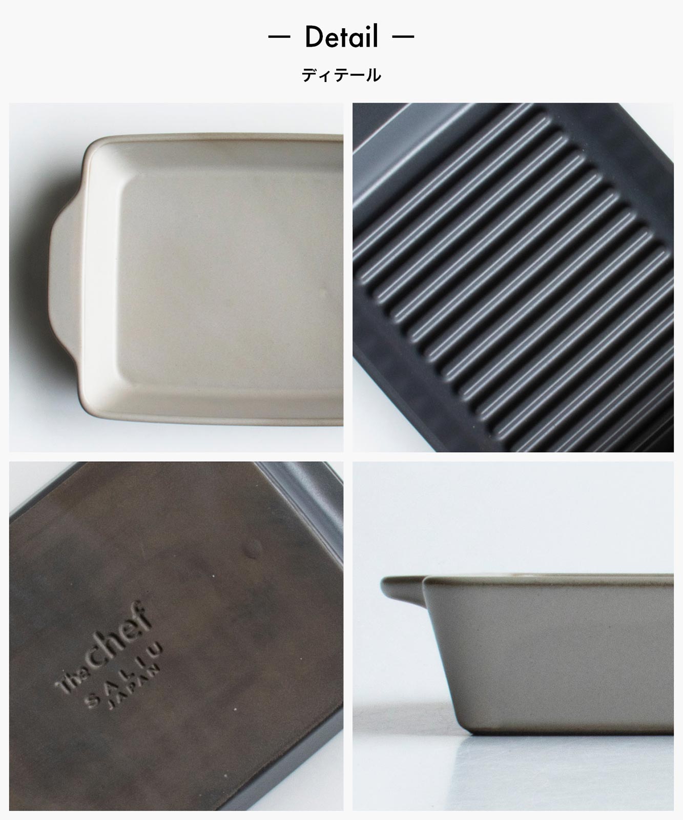 - ●吸水性があり、使用していく過程でうつわの持つ「味わい」に変化(主に貫入が入る)が見られますが、ご使用に差し支えありませんので、そのままお使いいただけます。●The chef Lサイズ(蓋付)をご希望の方は、ご自宅の魚焼きグリルの寸法(接地面からの高さ)をご確認ください。推奨サイズ 85mm以上。280x215(mm)がゆとりを持って入るサイズかをご確認ください。●IHでのご使用はできません。