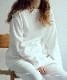 サトウキビを原料とするポリ乳酸の品質と機能を改良した繊維素材「ポリ乳酸繊維」で作られらた世界初のルームウェアです。植物由来かつ弱酸性のルームウェアは、肌と地球資源を守る新しい選択肢となっています