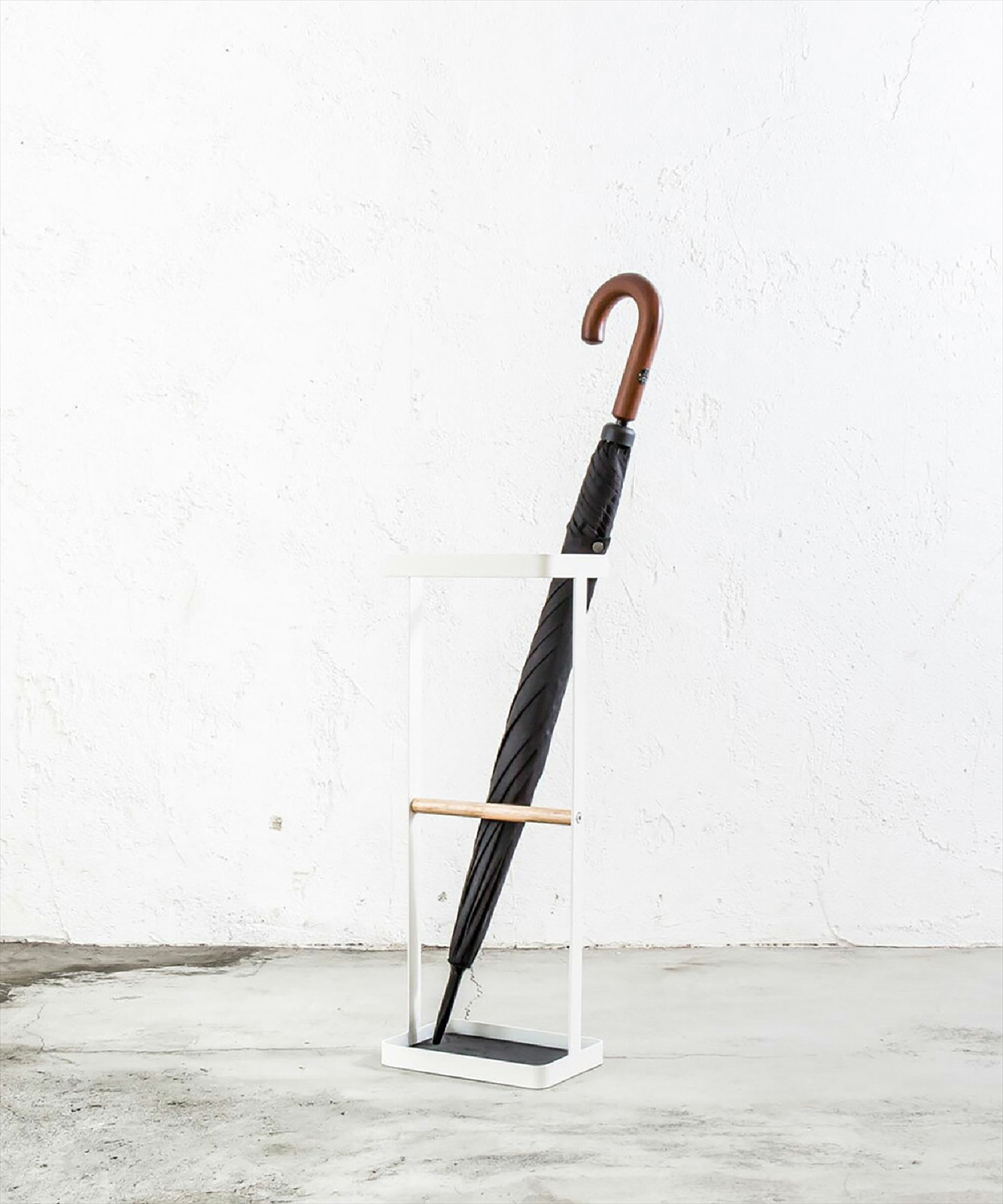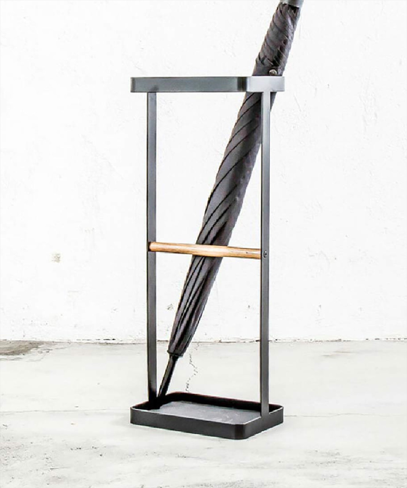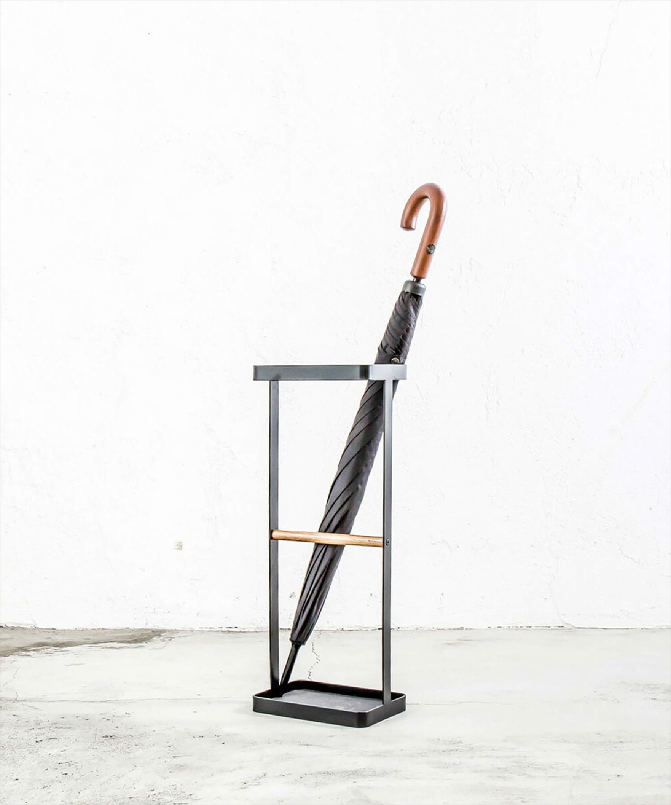 サンド塗装で仕上げたシンプルなデザインと高級感あるスタンド(ウッドバー)タイプの傘立て