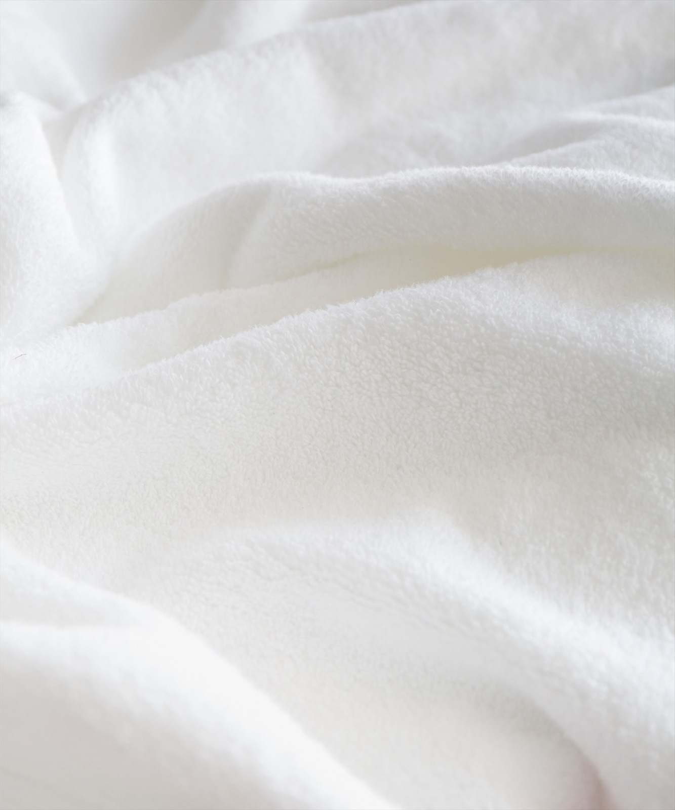 - やわらかさと吸水性が継続するよう、洗濯後に自然にボリューム感が戻るように織り上げています。