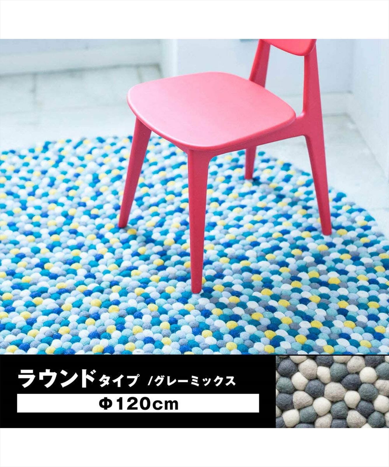 ニュージーランドウール100%のフェルトボールで作ったかわいいラグ