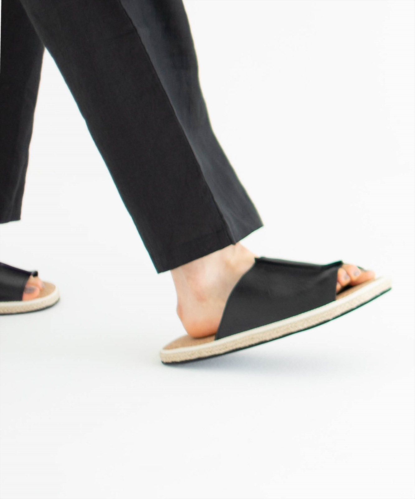 - ジュートのパイピングと甲部のPUがデザインのアクセントです。