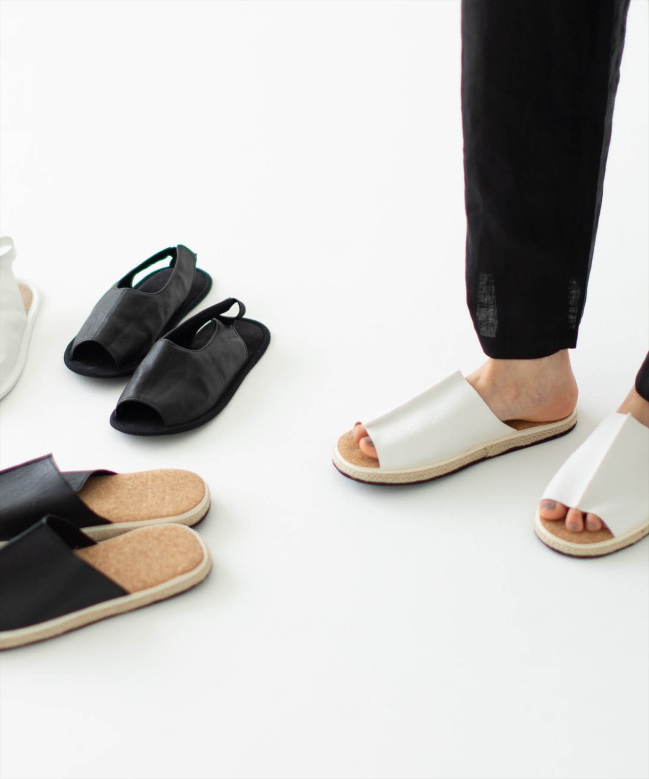 足の触れる中面をコルクで仕上げたシンプルなスリッパ