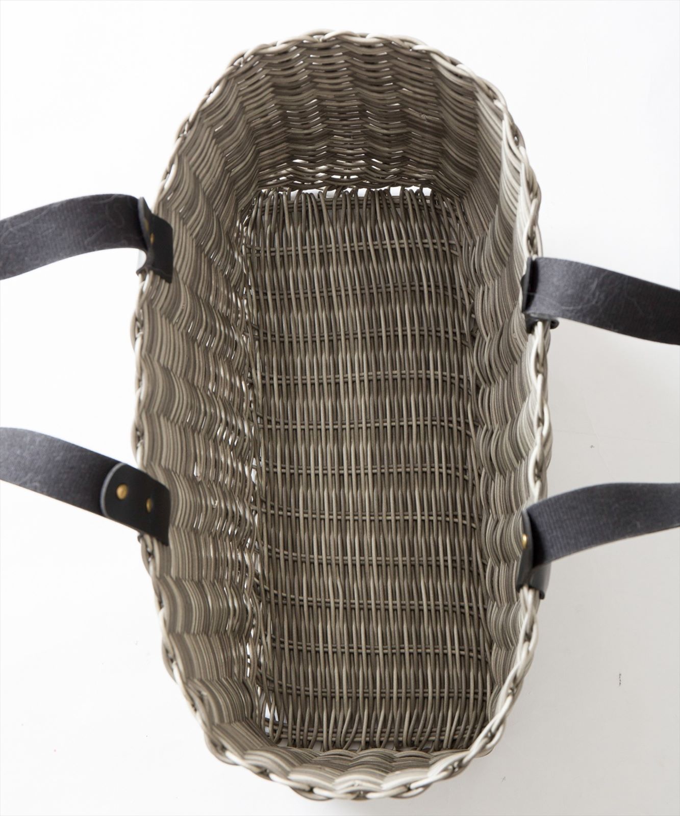 - 一般的にカラフルなマルシェバッグが多い中、ミックス系のグレー&クロのシックカラーは、お出かけ用にもオススメです。