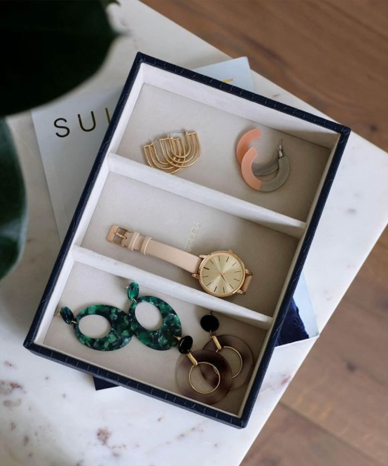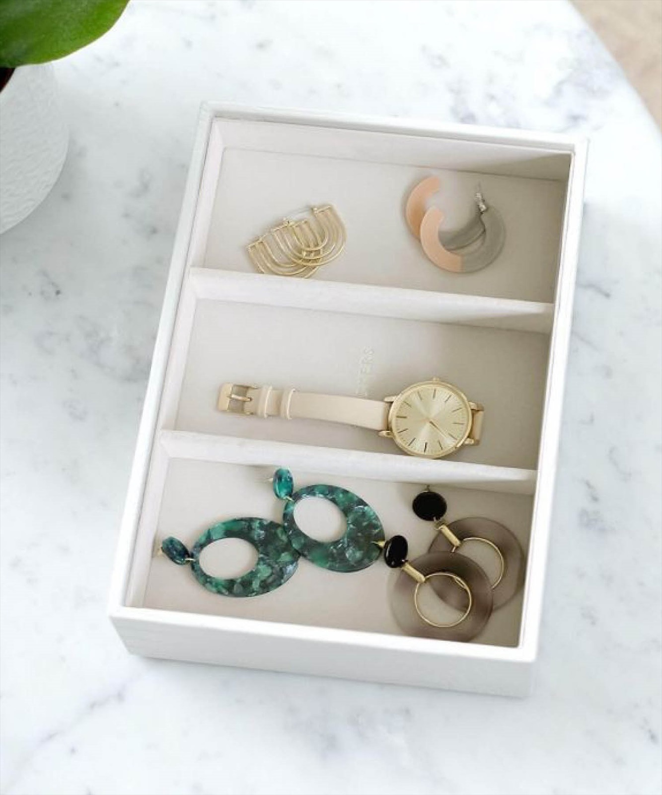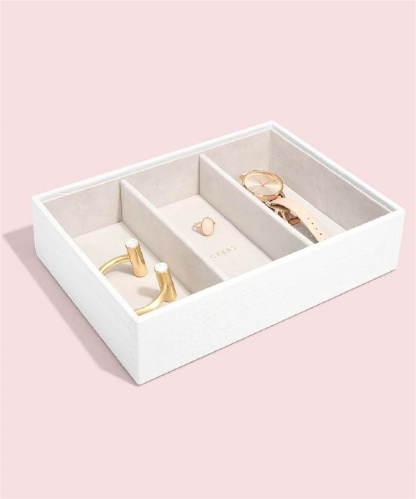 - Stackers 時計&ブレスレット用パッドやリングホルダーを活用するとぴったりと収まるので美しく収納できます。
