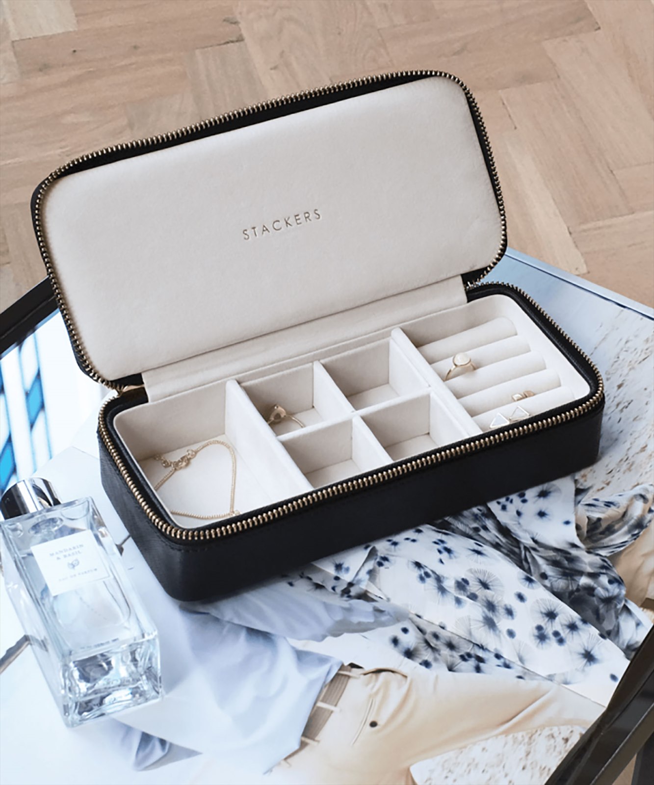 - 内部仕切りと優しいベルベットでお気に入りのジュエリーを保護し、持ち運びも安心です。