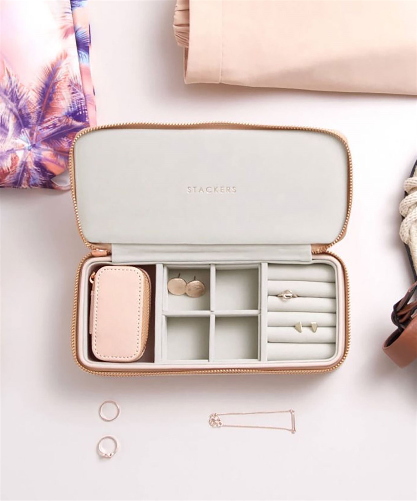 - ジッパー式なので落下時でも大切なジュエリーが飛び出すこともなく安心です。
