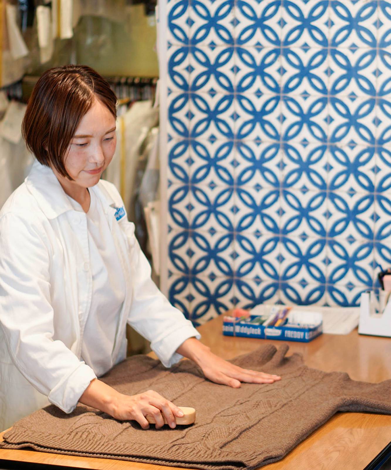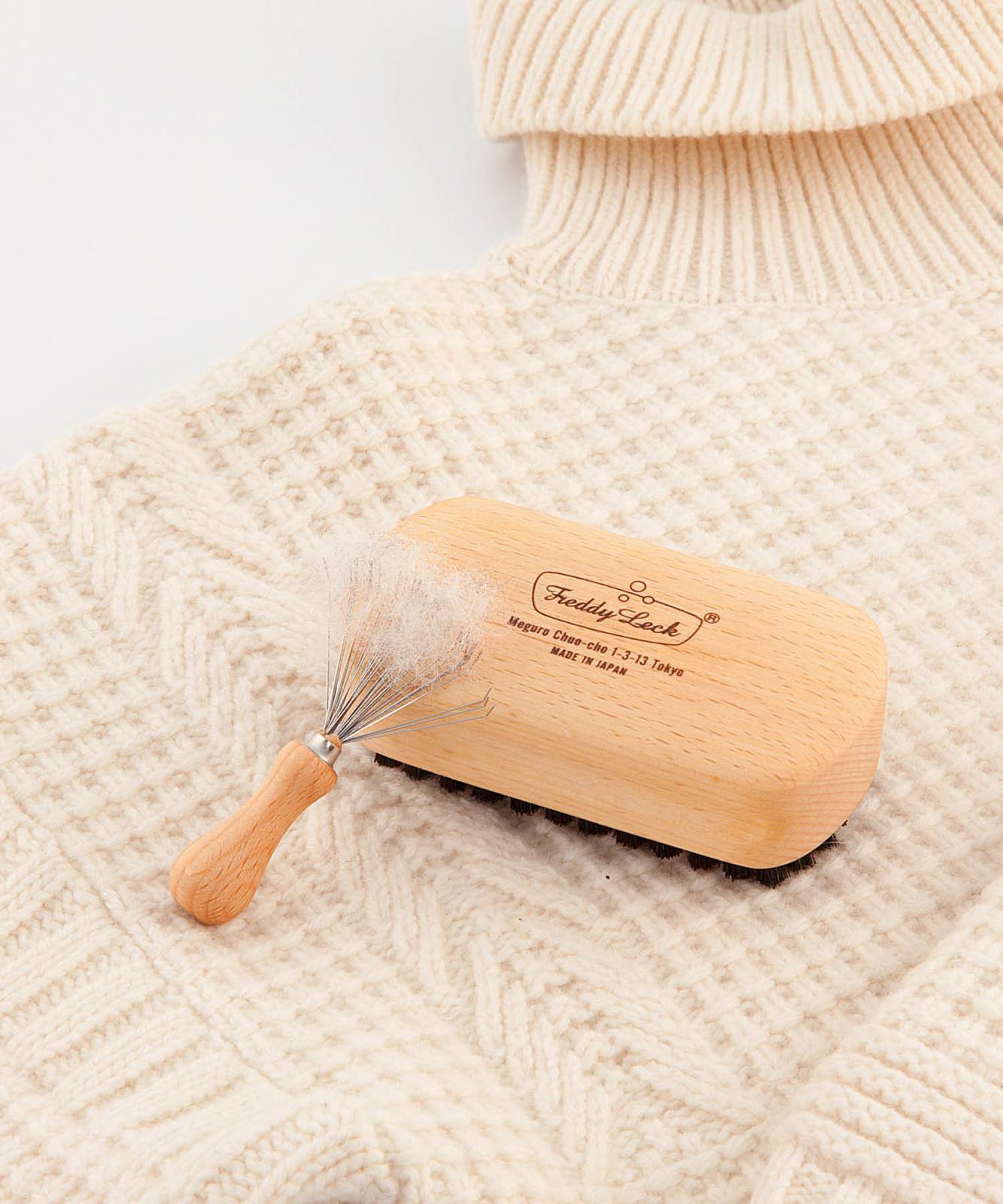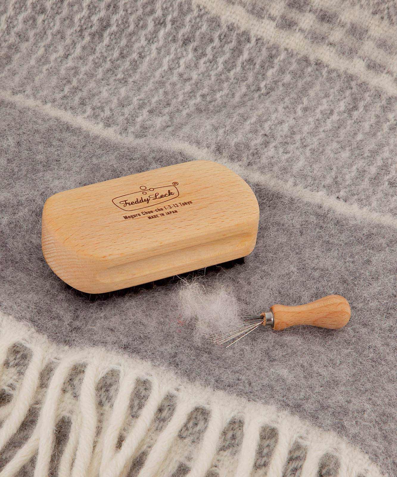 ウォッシュサロントーキョーで実際にスタッフが使用している毛玉取り用クロスブラシです。お手入れ用ブラシクリーナー付き
