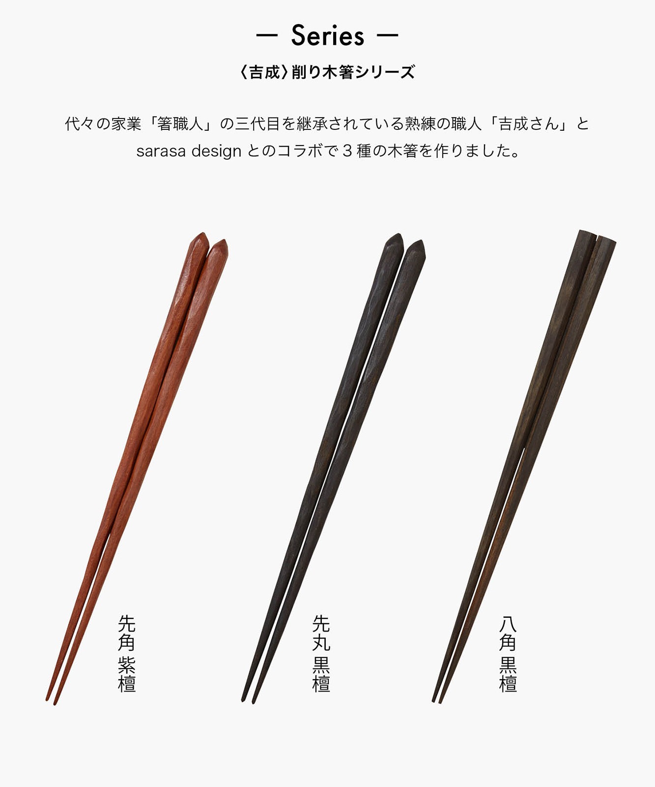 大正時代から約100年、東京で作り続けられている木の箸。代々の家業「箸職人」の三代目を継承されている吉成さんの箸です。