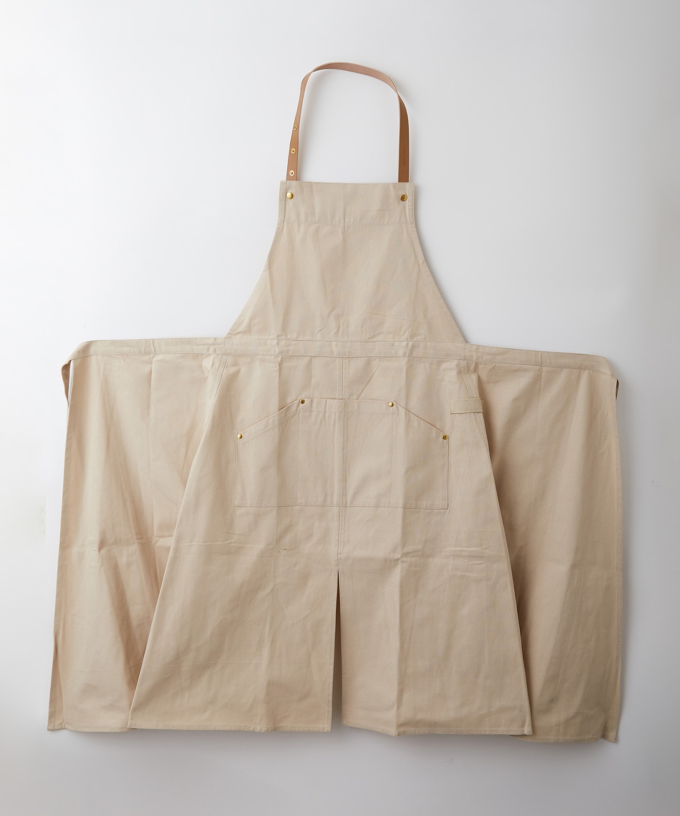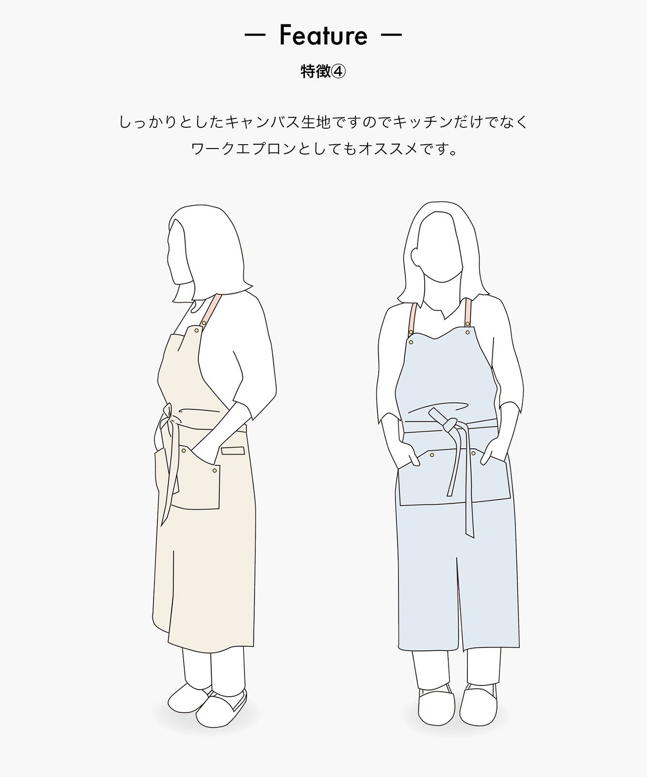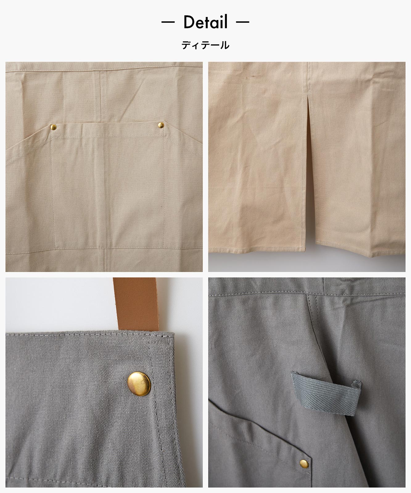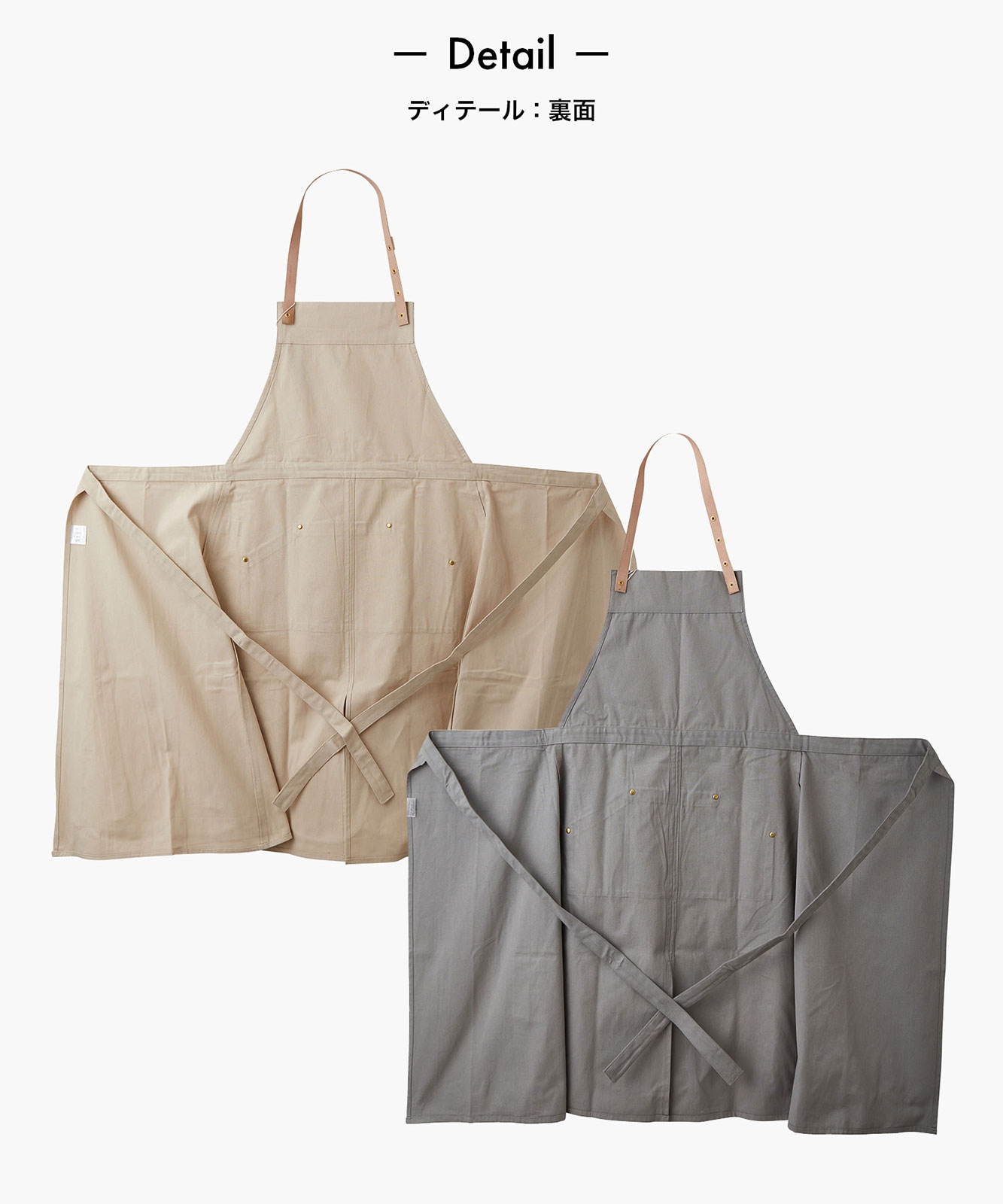 - しっかりとしたキャンバス生地ですのでキッチンだけでなくワークエプロンとしてもオススメです。真鍮製の金物もこだわって作りました。