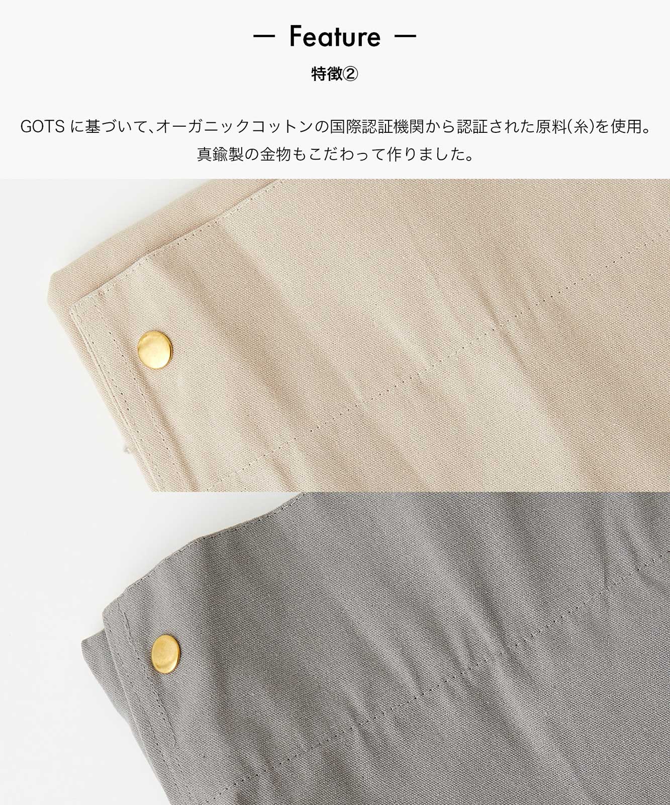 - 綿100%(オーガニックコットン)、レザー