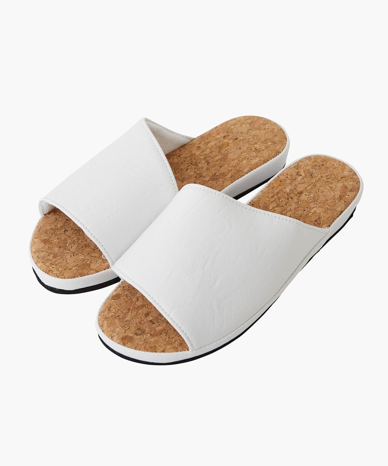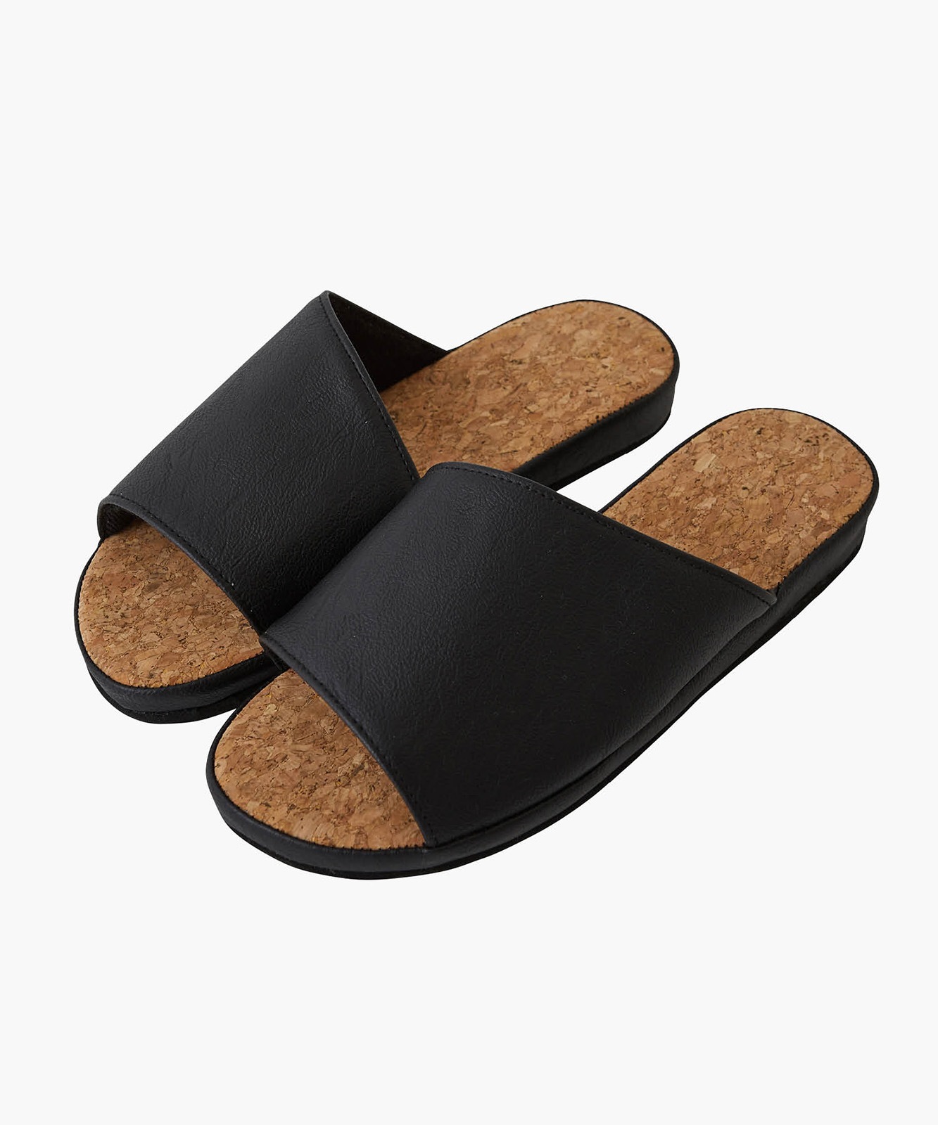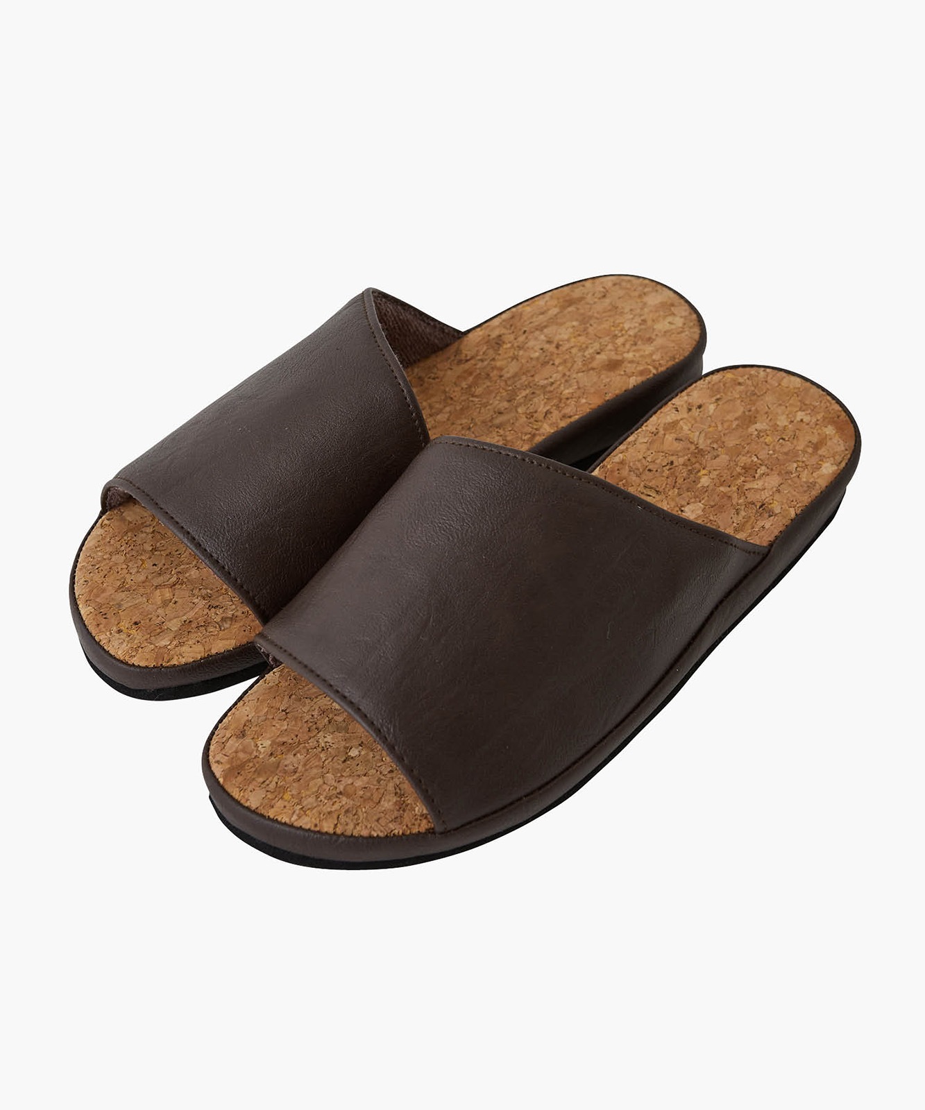 - オープントゥーの履き易いデザインのスリッパです。足裏が当たる部分にコルクを使用しています。