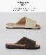 足が入れやすいハリのあるアッパー。弾力性がありしっとりとしたコルクを使用したインナーソール。シンプルで履き心地の良いデザインのスリッパです。