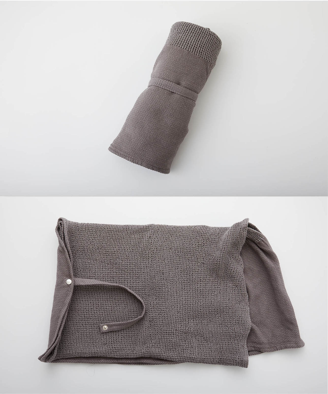 - くるくるロール状に丸めてお昼寝用の枕に、広げて膝掛けに。ソファでゆったり過ごす時間のお供にピッタリなアイテムです。1枚広げたりかけたりするだけでお部屋の雰囲気を変えることができるので、ちょっとした模様替えにもおすすめです。
