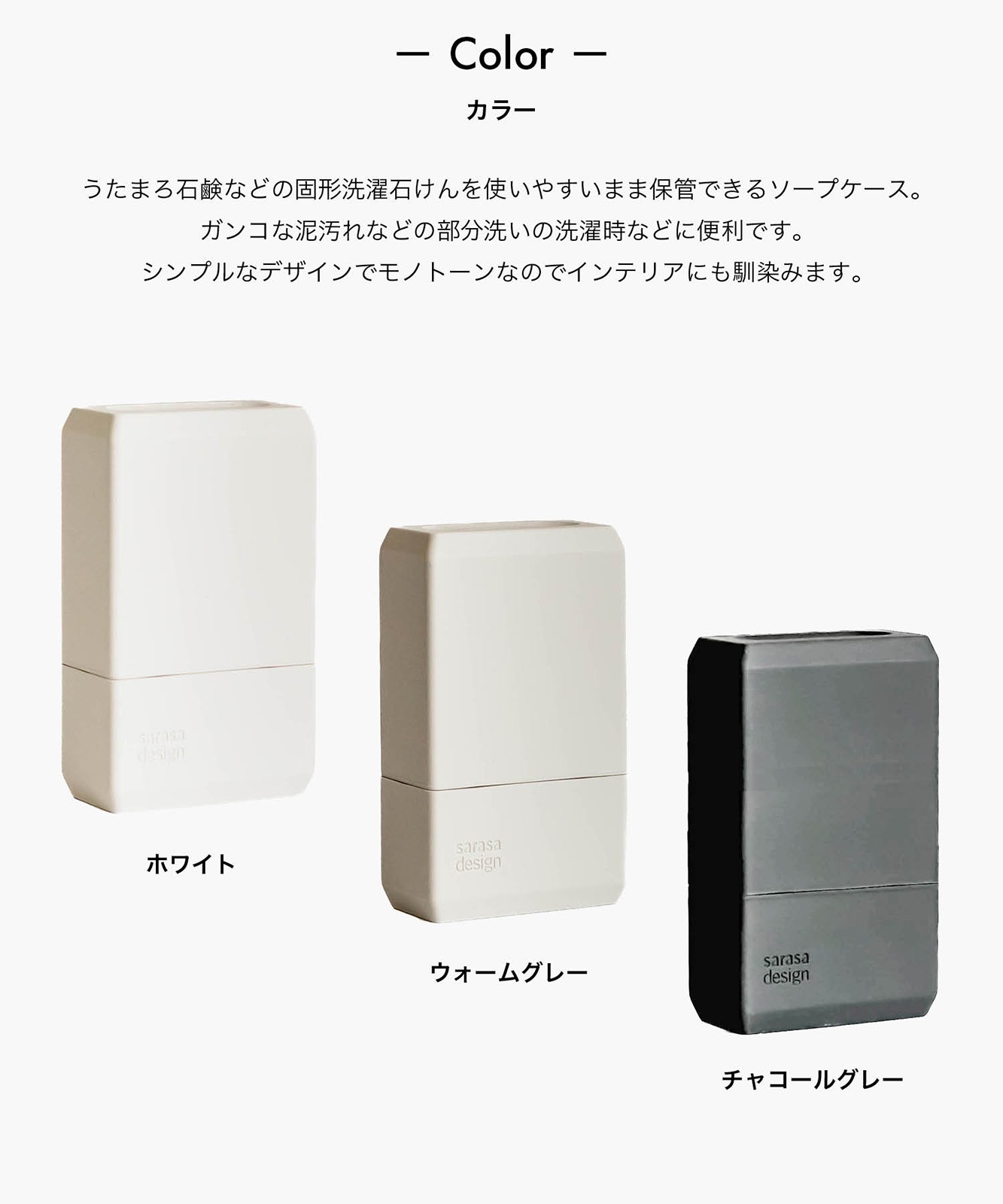 うたまろ石鹸などの固形洗濯石けんを使いやすいまま保管できるソープケース、ガンコな泥汚れなどの部分洗いの洗濯時などに便利です。