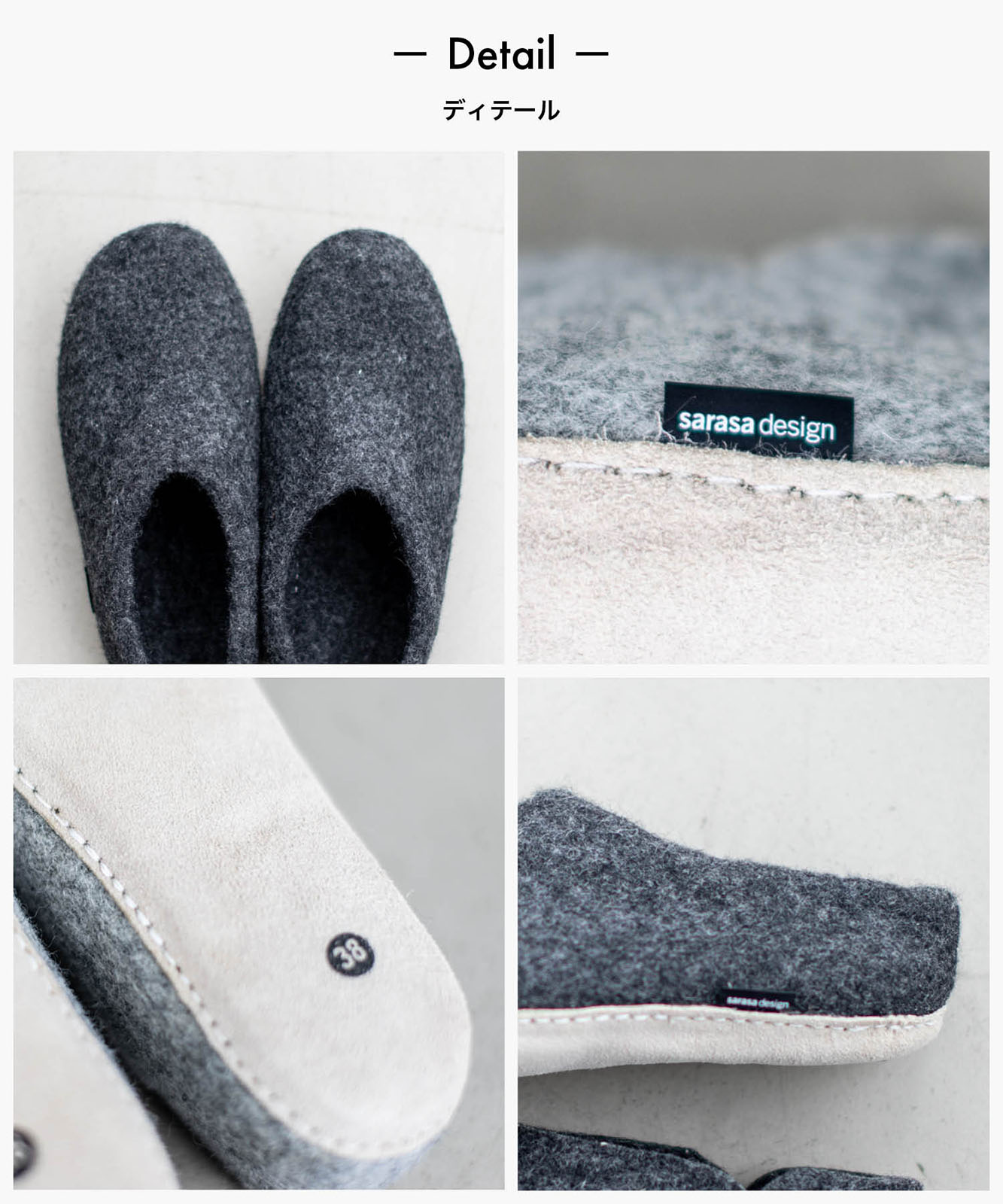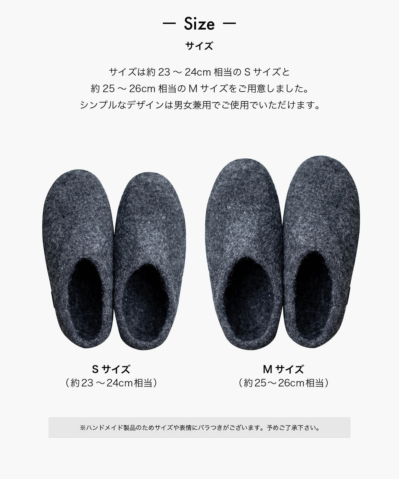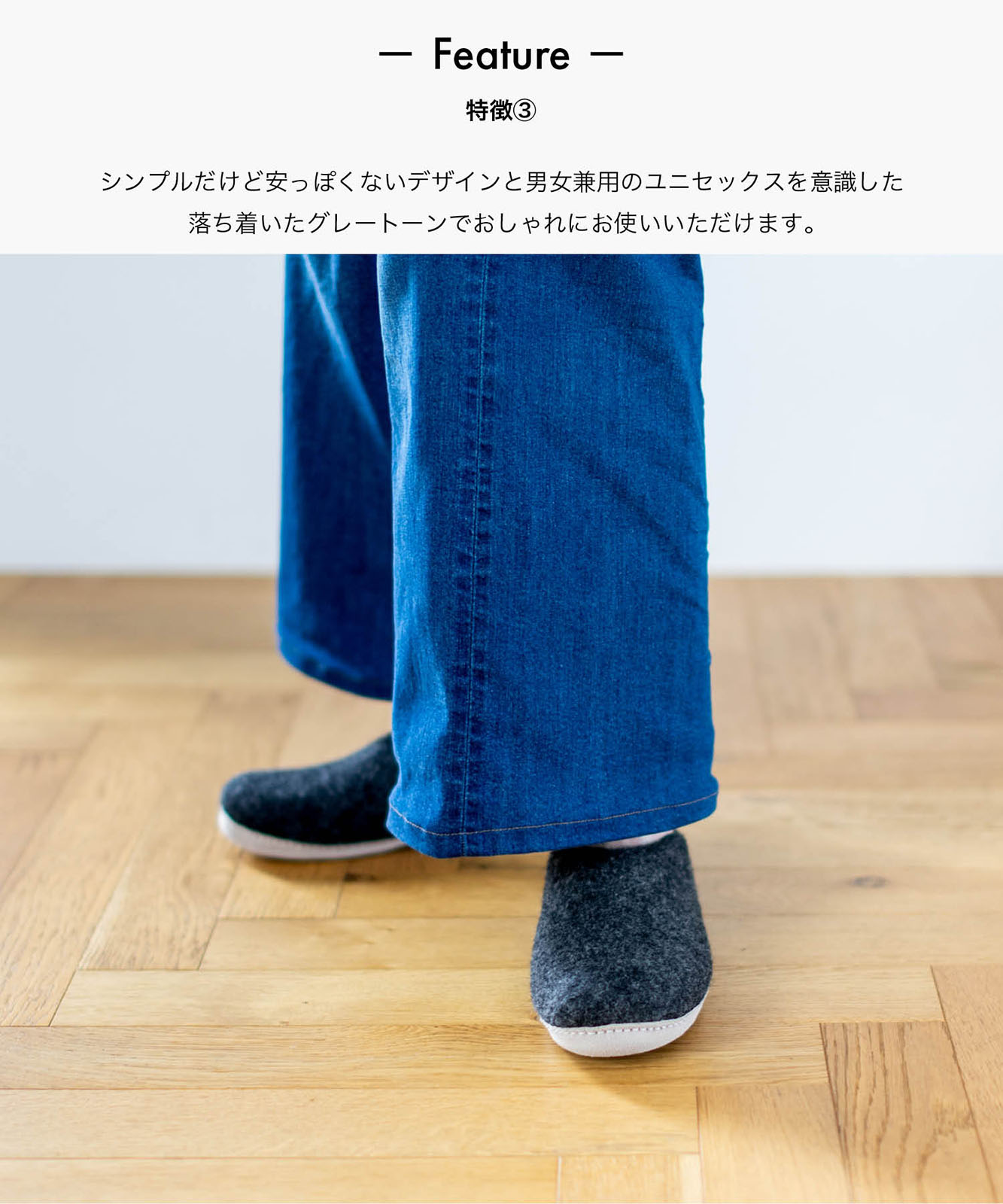 - 天然素材のウール100%のフェルトは保温効果が高く足元をほっこり温めてくれる履き心地も抜群のアイテムです。
