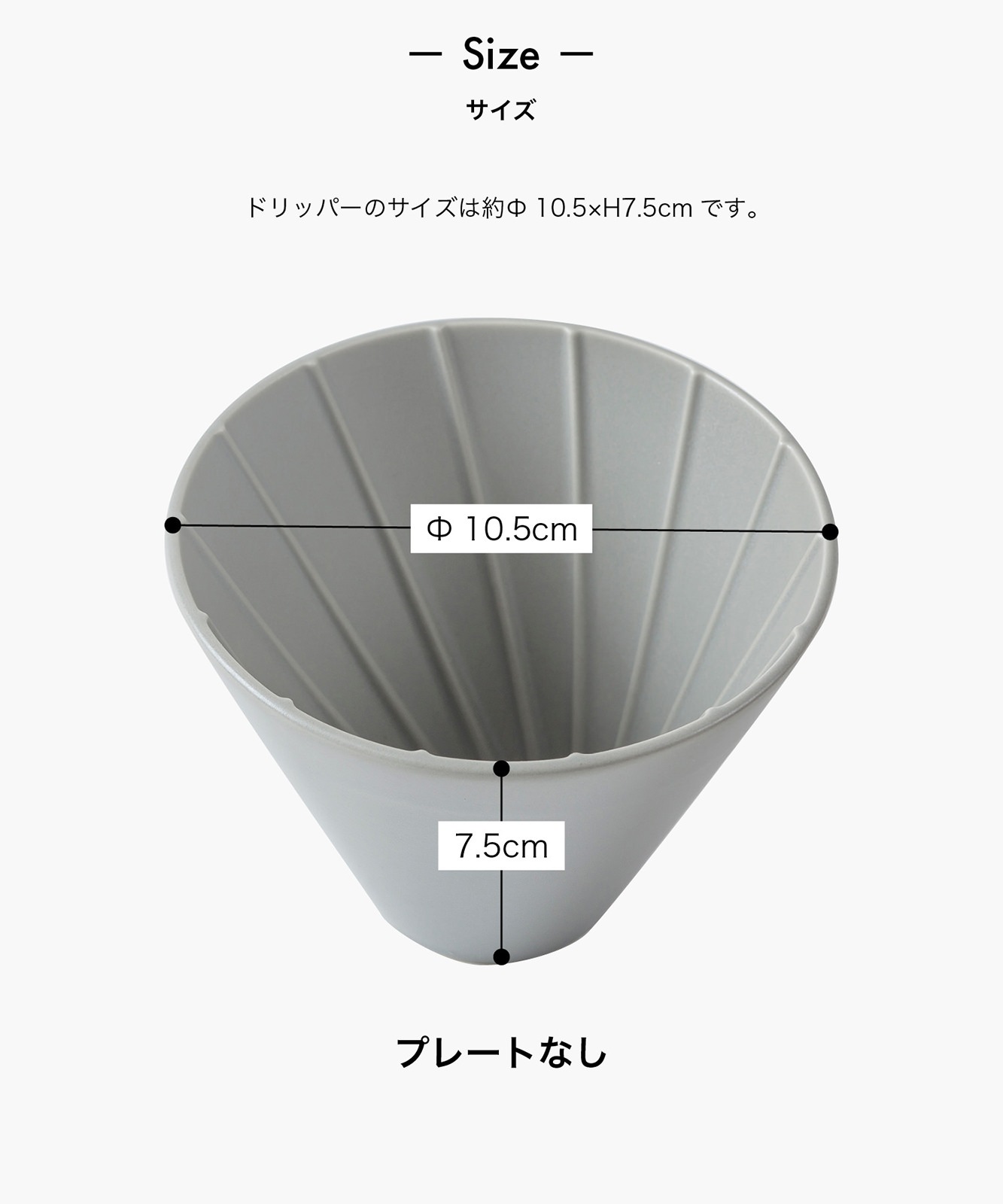 - 【ドリッパー】約Φ10.5×H7.5cm、【スタンド】約Φ10×H15.5cm(上部内寸6.5cm)